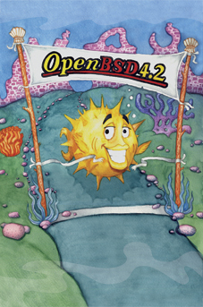 Join Puffy Hood and his Funny Fish as they take on the Sheriff (an unelected leader) and other evil forces of the draconian government! As we did for the 3.3 release, we have once again tried making release artwork and music which are allegorical of recent happenings. Two years ago we became involved with the University of Pennsylvania and DARPA, who were funding us to do security research and development .. on things that we were already intending to do. We provided ideas, wrote papers, and deployed cutting-edge technology; DARPA provided finances and reaped a share of the credit, and the University of Pennsylvania acted as a middle-man. We accepted funding based on the promise that our freedom to operate as we wished was unaffected. To us, freedom is more important than funding — heck, we were dealing with the evil forces of government, and needed to be careful. A few months prior to this release, DARPA suddenly and without warning decided to withdraw that funding; they also aggressively backed out of contractual obligations. Many articles in the press followed regarding this sudden maneuver. Apparently this hoopla happened because an OpenBSD-related article in the Canadian newspaper The Globe & Mail had quoted Theo de Raadt making anti-war statements regarding Iraq and the theft of oil. The only answer given (to major media reporters) by a DARPA spokesperson (Jan Walker) was this: "As a result of the DARPA review of the project, and due to world events and the evolving threat posed by increasingly capable nation-states, the Government on April 21 advised the University to suspend work on the "security fest" portion of the project." That almost toes the line of calling us terrorists! We had lost financial support, but the release of the statement above suddenly made us very happy to be free of any perceived obligation to such crazy people. Since the termination came near natural contract termination (about 4 months remained), less damage than expected was sustained by the project. Sponsors stepped forward and helped us make up the missing funds we needed to run our "Hackathon", and the event proceeded as planned. We even had T-shirts made with "Workstations of Mass Development" artwork for those developers who attended (sorry, they are not for sale). We could not make stories like this up. So instead, we are making up an allegory about it, using the tale of Robin Hood. |